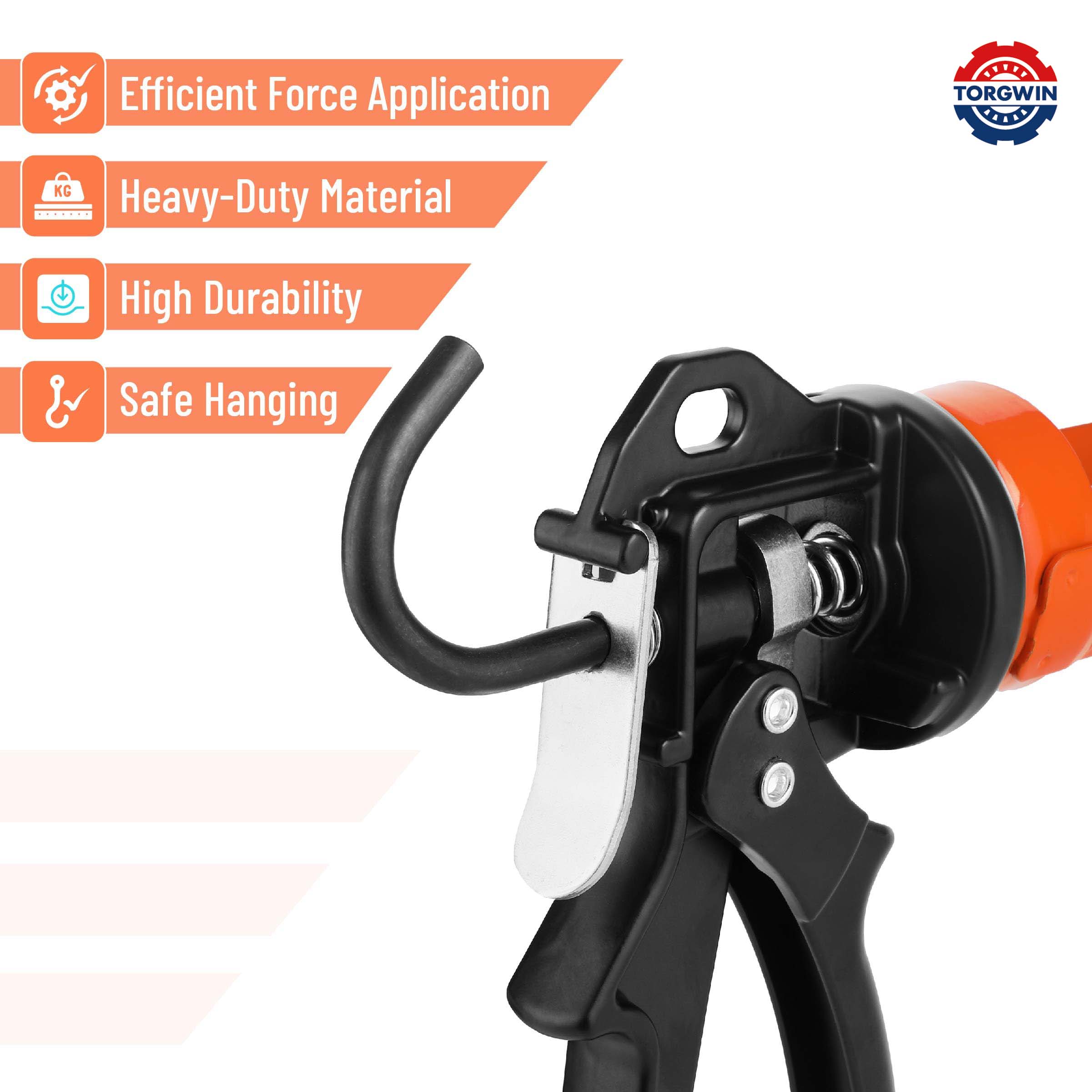 Bates Caulking Gun heeft een krachtige 24: 1 stuwkrachtverhouding, waardoor het perfect is voor het aanbrengen van dikke materialen met een hoge viscositeit zoals epoxy of constructielijmmen.